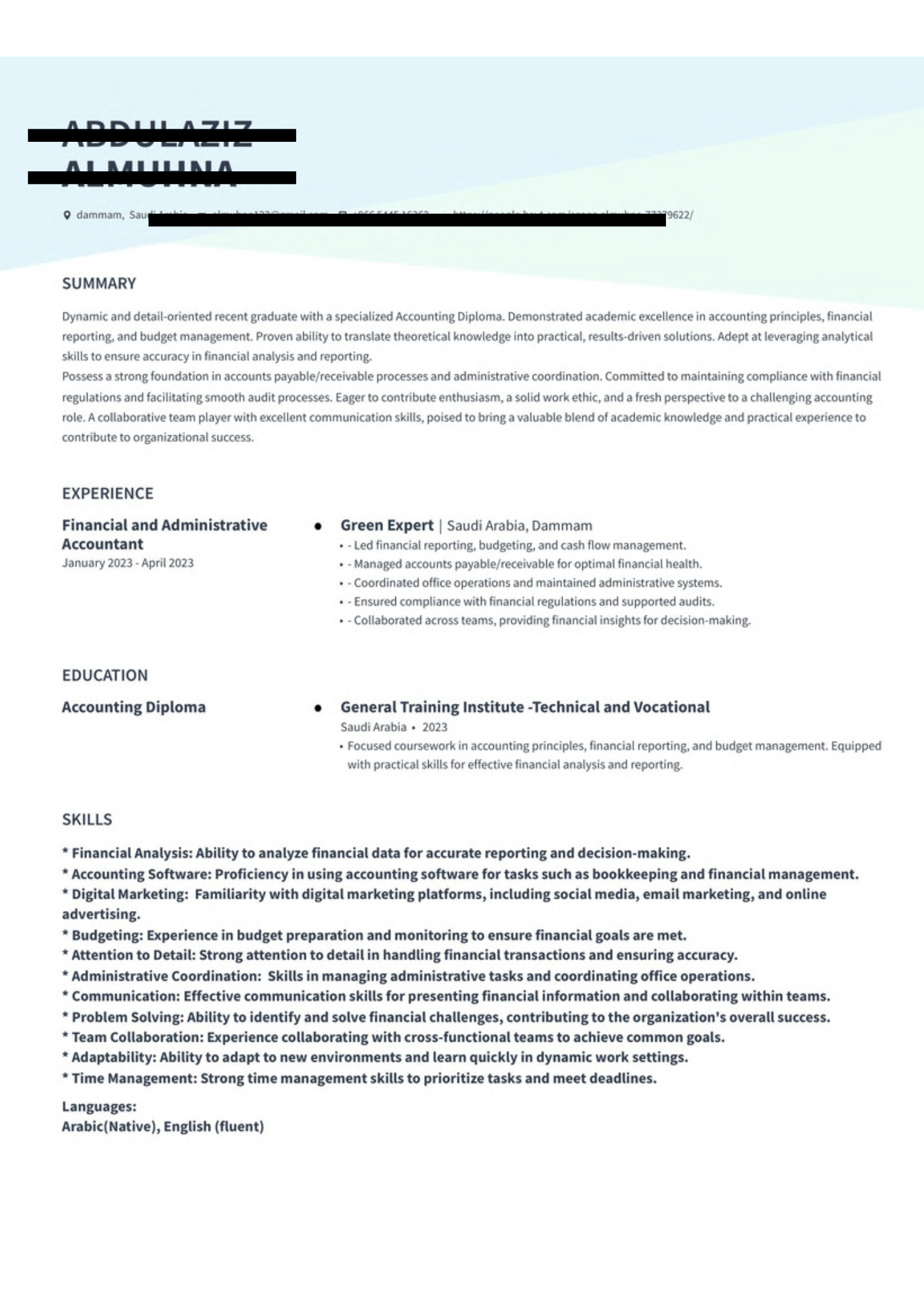 خدمة تصميم سيرة ذاتية احترافية لغة انجليزي أو لغة عربي